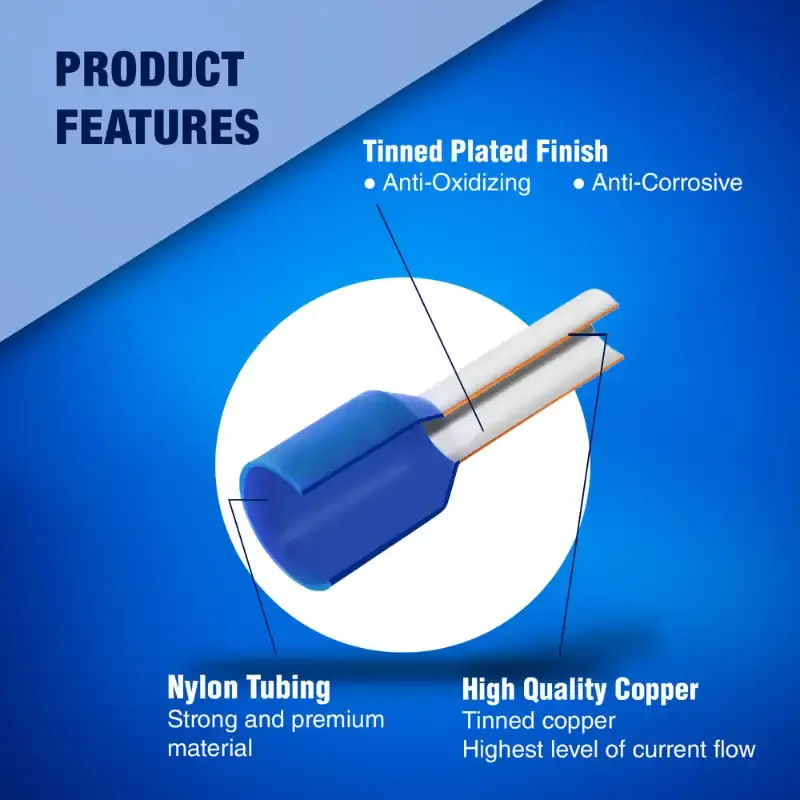 Key Features: High-conductivity copper; PP insulated sleeve; gray color coding; enhances connection stability and wire protection.