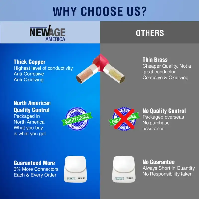 New Age America Wire Ferrules Insulated 20 AWG, Gray – 1,000PCS Bulk Pack