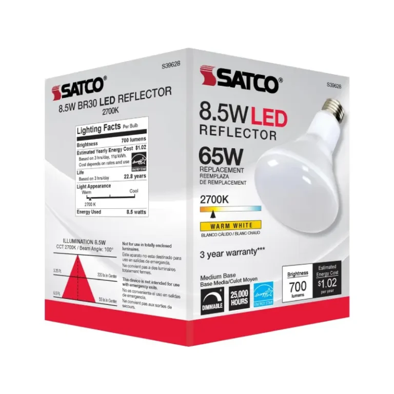 Satco S39628 8.5 Watt; BR30 LED; 2700K; 80 CRI; Medium Base; 120 Volts; Dimmable